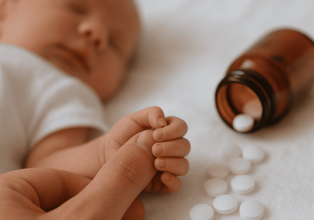 A mãe ingeriu uma cartela inteira do remédio errado durante o período de amamentação, o que causou efeitos adversos tanto nela quanto no bebê, incluindo diarreia e possível alteração nos níveis de glicose.